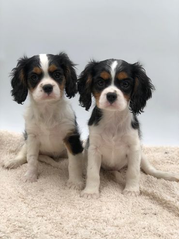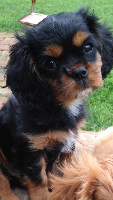 A very athletic boy, AKC Theobroma Cacao of Oak Glen Creek is a rare tricolor chocolate cavalier. He is OFA CHIC (#152843) and is clear CCDE and a carrier of EFS and DM.