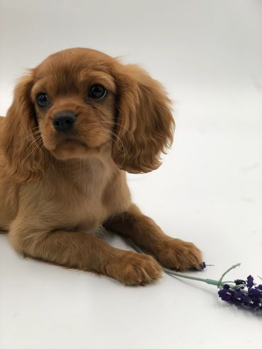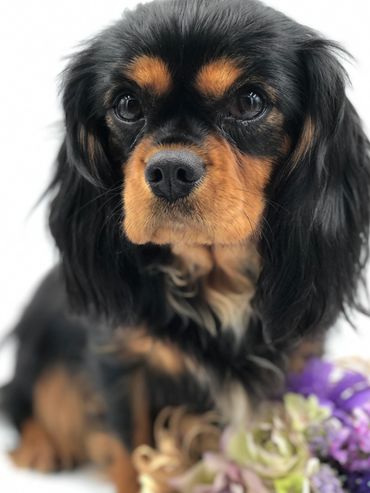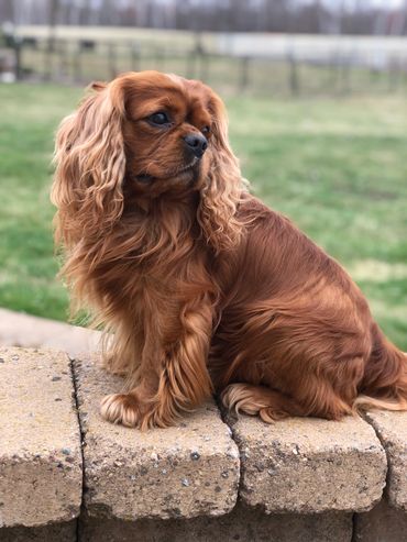 The sweetest boy for sure, AKC Count Chocula or Choco Levian is a rare chocolate and tan cavalier. He is heart, eye, patella and hip cleared and is clear of EFS and CCDE and a carrier of DM. Choco is OFA CHIC certified (#156331)